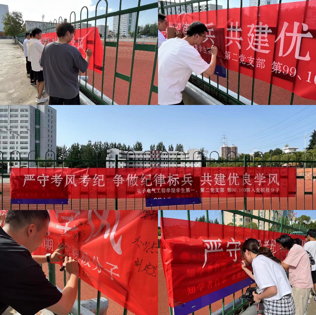 会后,全体党员在电气楼一楼横幅签名。(文/申洁 图/赵雄)