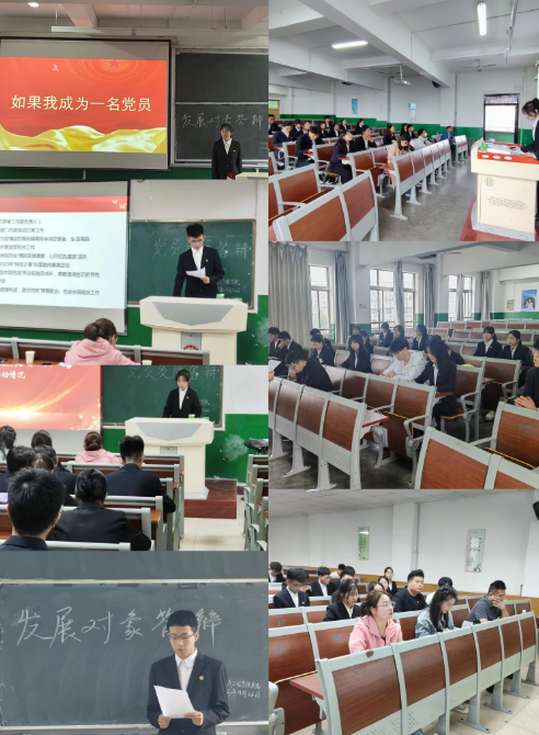 经过支部考核,共有46名入党积极分子参加了现场答辩。答辩分为个人展示、主题演讲、现场提问三个环节,参与答辩的同学分别从学习党的二十大情况、参加“星火班”、青年夜校、学习成绩、参加志愿服务情况、参与公司和班级各项工作和活动情况、联系服务身边同学情况、担任职务和获奖情况等方面做自我介绍。围绕“如果我成为一名党员”进行了主题演讲,与会评委结合个人展示进行了提问,全面考查了发展对象的入党动机、理论学习、综合表现和服务身边师生的情况,答辩组成员对各发展对象进行综合考评打分,提出批评和改进意见。