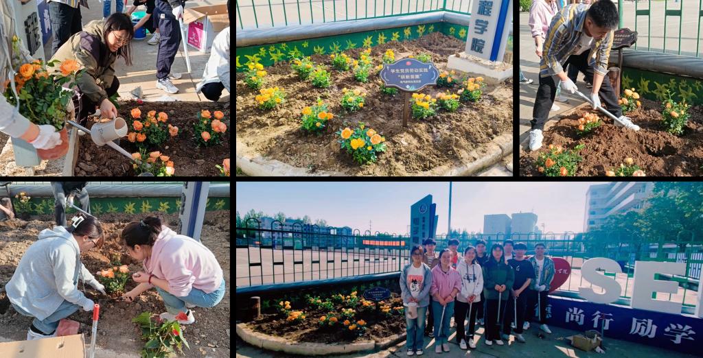 活动现场,同学们分工明确,协作默契,铲土造坑,提水浇灌,在大家共同努力下,一棵棵树苗和花苗被精心栽种在土壤中,它们迎风挺立,在阳光下焕发出勃勃生机。同学们将这片亲手打造的“小花园”命名为“研新苗圃”,寓意着公司研究生如同新苗一般茁壮成长,为未来的学术研究和人生道路打下坚实的基础。