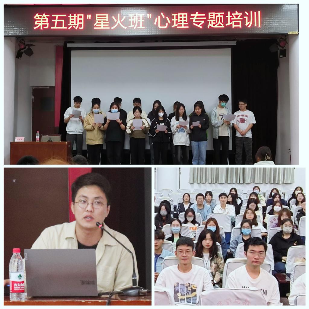 会上,“星火班”学员带来了精彩的《我和我的祖国》大合唱,学员们豪迈的歌声,让我们感受到青年应有的活力。随着表演的结束,本次培训正式开始。石莹波老师从澄清心理世界和物理世界的区别开始,以影视作品为例,从恐惧、崇拜、羞耻、娱乐等日常感受和生活现象出发,通过丰富的现实案例、大量的史料依据,从理论心理学和精神分析视角引导大家思考和感受理性与非理性的关系、病耻感的来源和本质、互联网背景下对精神疾病的的消解和娱乐化等方面的内容,最终落脚到对个体存在的反思和对他人的伦理责任是破除病耻感的根本这一结论,这也是自助助人的哲学内涵。一个小时的精彩讲座赢得了现场师生的热烈掌声。大家纷纷表示,此次讲座内容丰富实用,对大家理解心理世界、精神(心理)疾病,有效维护精神健康,构建健康和谐的心理健康生态具有现实的指导意义,令大家受益匪浅。
