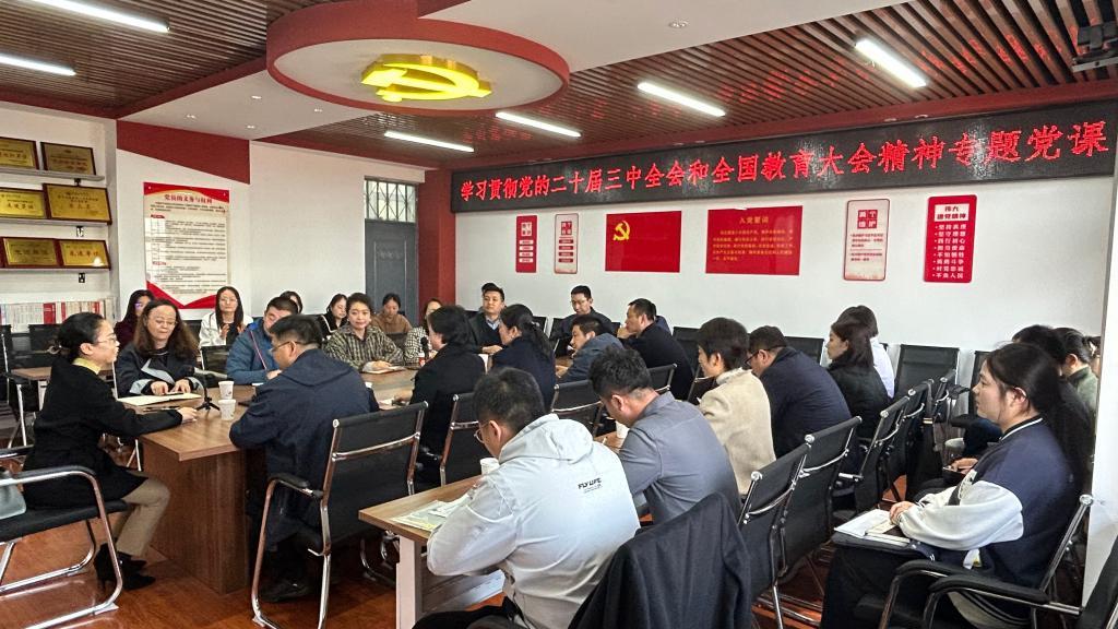 凡明锦以《深入学习贯彻党的二十届三中全会和全国教育大会精神,提升党性修养,推动公司改革发展再上新台阶》为题,回顾了党的二十届三中全会和全国教育大会的关键内容。她强调,学习贯彻党的二十届三中全会精神和全国教育大会精神,要牢牢把握教育是国之根基、科技是第一生产力、人才是第一资源核心要求,以实际行动践行“为党育人,为国育才”初心使命,在推动教育高质量发展和公司建设高水平大学中不懈奋斗,建功立业。她指出,党性修养是党员在政治、思想、道德品质和知识技能等方面按照党性原则进行自我净化、自我完善、自我革新和自我提高,全体党员干部要对标新时代好干部标准,主动顺应高等教育高质量发展的时代要求,修好身,做到大处着眼、小处着手;用好权,做到认识权力、规范权力;律好己,做到固本培元、谨言慎行,谋实事,做到把握规律、科学决策;创实业,做到真干事、干成事,积极勤勉,精益求精,为公司事业高质量发展作出应有贡献。